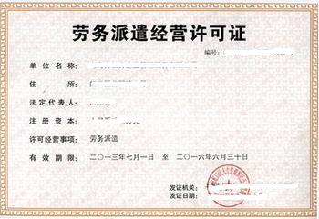 (1)注册资本不低于200万元; (2)固定的经营场所和设施; (3)合法合理的劳务派遣制度; (4)法律、行政法规规定的其他条件。 2、程序条件——前置审批 (1)向劳动行政部门申请经营劳务派遣业务的行政许可; (2)许可获准的(颁发证件),凭证件到工商行政管理部门办理相应的公司登记(经营范围)。申请材料: